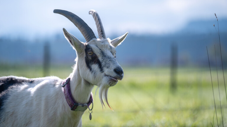 Linda (Pfauenziege), mit Jahrgang 2014, kam später dazu. Sie lebte inmitten einer Kuhherde als einzige Ziege auf der Weide. Der Besitzer war froh, dass wir uns bei ihm meldeten (die Ziege war uns aufgefallen wegen ihrer stark deformierten Klauen) und gab uns die damals sehr scheue Pfauenziege gleich mit. Mittlerweile ist auch sie sehr zutraulich geworden, hat Vertrauen zum Menschen gefasst und sie mag es, gekrault zu werden.